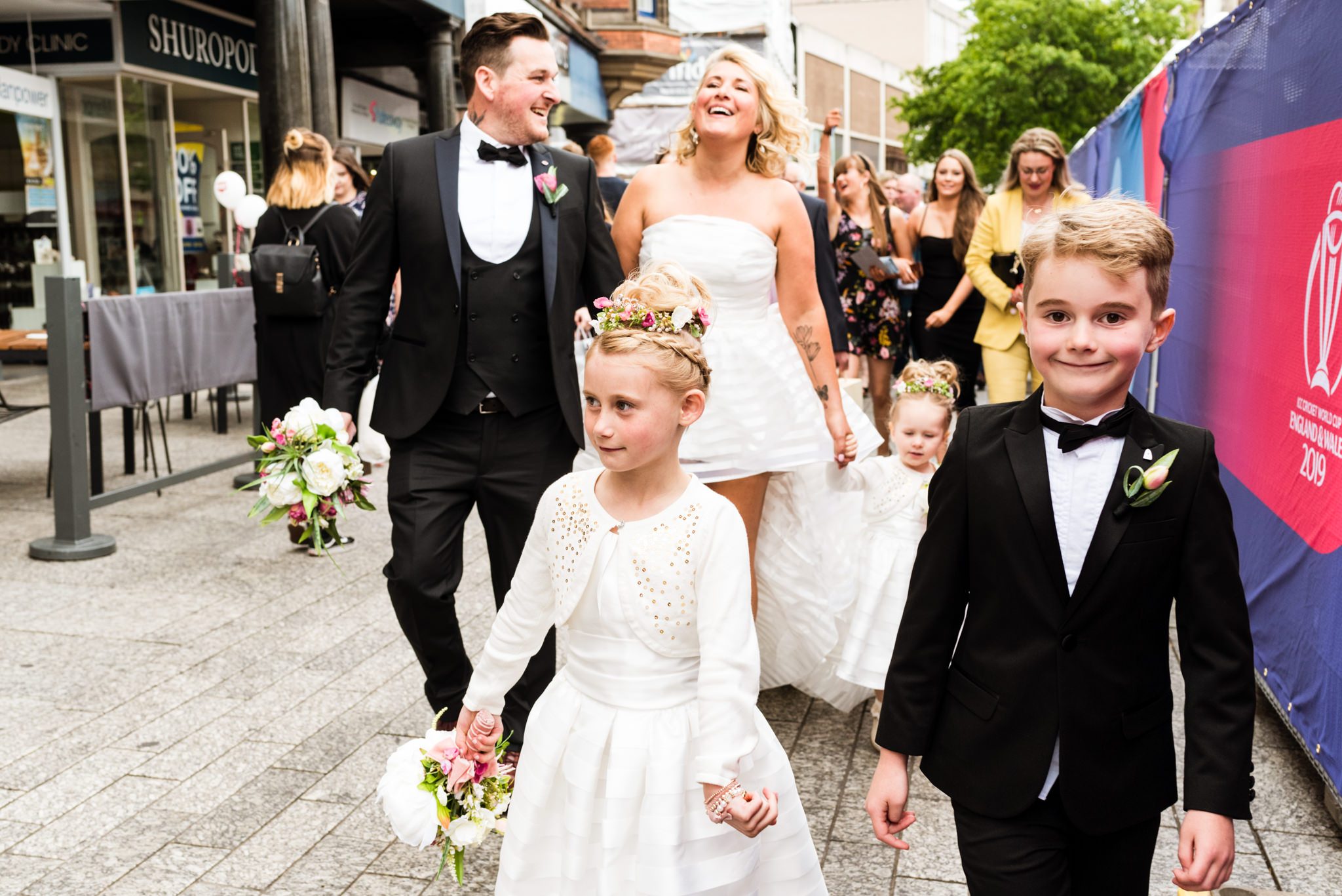 The council house in the centre of Nottingham is a stunning building, and makes for a fantastic wedding venue. With all the hustle of the streets outside, it gives so much energy to the photos as people arrive and leave the building. For Kerrie and Luke, they loved that it was so central, and they chose a reception venue that was walking distance, so they could walk through Nottingham with their guests. I love these photos of the two of them along with their kids, leading the wedding guests to Revolucion de Cuba for the party!