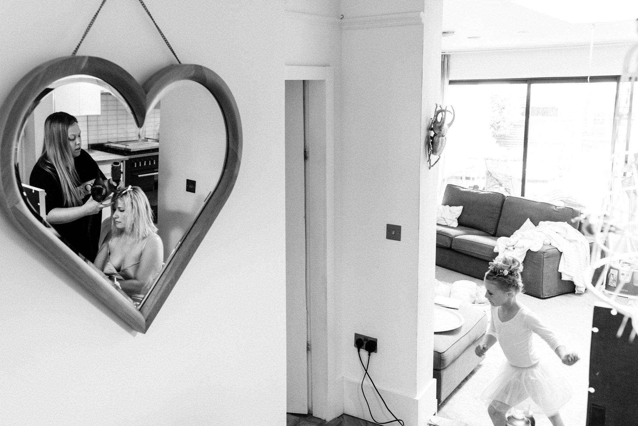 With wedding photography, you often read about photographers “telling the story of your day”, and to me that means creating a full narrative of the wedding day, with a beginning, middle, and end. And what better way to start of a story than at home! Which is what I did with Kerrie, as she got ready with her daughters, her parents, and one of her friends who was helping with her hair.